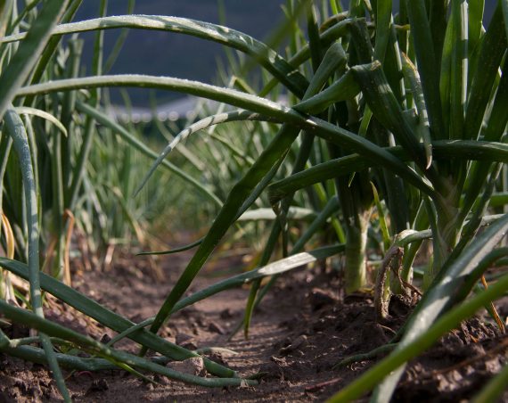 Wir bauen unser Gemüse auf erhöhten Dämmen an, dadurch bleibt weniger Feuchtigkeit bei den Pflanzen, was ihre Gesundheit fördert. Krankheitsanfällige Kulturen (Tomaten, Gurken, Auberginen usw.) bauen wir regengeschützt in unseren Folientunnels an. Außerdem bevorzugen wir widerstandsfähige Gemüsesorten (z.B. mehltauresistente Zucchini). Bei unserem Gemüse verzichten wir komplett auf den Einsatz von Herbiziden. Dies erfordert eine ausgeklügelte maschinelle Hacktechnik, um das Unkraut zu entfernen, der Rest ist Handarbeit.